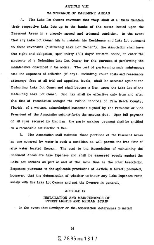 - Palm Beach County ULDC — Lake Easements & Tracts (Article 11.B.8.A) — Quotes: “placed entirely within a water management tract dedicated or deeded to an acceptable entity…” and “lake maintenance easements… shall be established over common areas only, and shall not encroach residential lots.” (See “Stormwater Management and Maintenance Access Rights,” p. 43.)